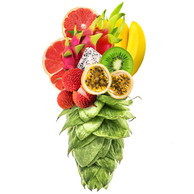 Silné aroma citrusů, grepu a limetek s nádechem tropického ovoce.