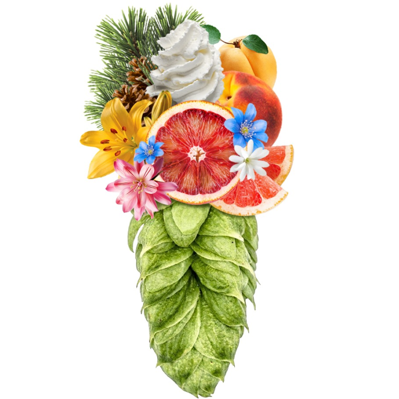 Chmelové aroma s intenzivní vůní grapefruitu, květin, peckového ovoce a pot-pourri, doplněné nádechem borovice, pryskiřice a smetany.