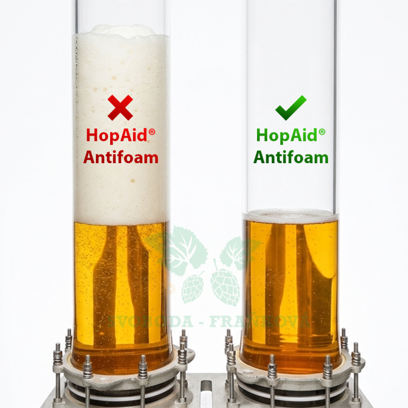 HopAid® je zcela přírodní protipěnivá látka chmelového původu, která je určena k zabránění nadměrné tvorbě pěny během fermentace. Prokazatelně pomáhá snížit prostor nad kvašením až o 20 %, maximalizuje kapacitu nádrže a zvyšuje ziskovou marži. Přípravek je vhodný pro všechny typy kvasných nádob a lze jej použít jak při svrchním, tak při spodním kvašení.